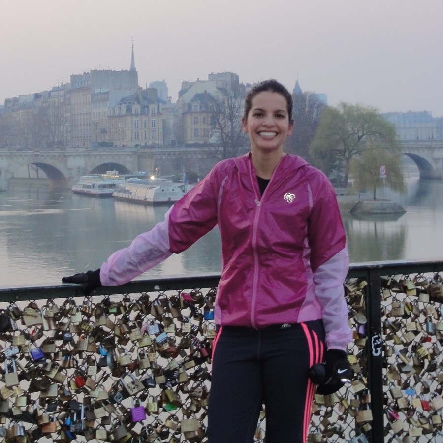 Hope de City Jogging Tour of London with Paris Running Tour – Louvre Pyramid 10:35 AM – Hope from London (United Kingdom) is the creator of City Jogging Tours of London, one of the first “Sightjogging Tours” in the world. What is better than a visit of Paris while running to share our running tour guides experiences? We thus left Montmartre to make a beautiful stroll… Hope – Montmartre, in the background, the whole of Paris! …by coming down to the South and by way of nice Parisian covered passages… Hope – Passage Jouffroy – Galerie Vivienne …by being amazed by the famous padlocks on the “Pont des Arts”, more and more numerous… Hope – “Pont des Arts” – In the distance, the Orsay Museum and the Eiffel tower …by making a break in the garden of the Tuileries… Hope – Tuileries Garden …by crossing the “Champs- Elysées”… Hope – Champs Elysées – Far off, the Arc of Triumph …to greet Winston Churchill… Hope – Winston Churchill, near the “Petit Palais” … And finally join the Eiffel Tower and the Ecole Militaire (Military school). City Jogging Tours of London and Paris Running Tour If you pass by London, go run a Jogging Tour with Hope and her team! A wonderful stroll in London! One day, Paris will be happy to go running with London… Merci Hope ! The route of the tour: