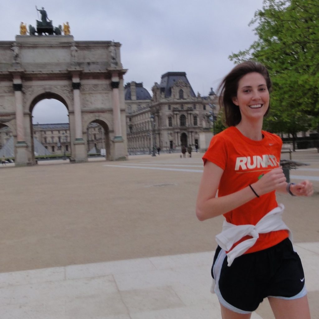 Arc du Carousel – Kristy 8h01 – Kristy, d’Atlanta (USA), une semaine après avoir couru le semi-marathon de Georgia, et ayant pleinement récupéré de la course, a choisi de faire une visite sportive de Paris avec Paris Running Tour. Nous avons exploré l’Ile de la Cité, la rive droite en passant par le Louvre, les Tuileries et les Champs Elysées, puis nous avons gagné la Rive Gauche, pour courir sous les arches de la tour Eiffel, traverser les Invalides et longer la Seine jusqu’au point de départ, le Quartier Latin. Au cours de la visite, comme les armées de Napoléon, nous sommes passés « triomphalement » sous l’Arc du Carousel ! Merci Kristy* ! L’Arc du Carousel : Après sa victoire à Austerlitz, Napoléon déclara à ses troupes : « Vous ne rentrerez dans vos foyers que sous des arcs de Triomphe ! ». Ainsi furent bâtis l’Arc du Carousel aux Tuileries et le majestueux Arc de Triomphe de l’Etoile. 130 ans plus tôt, Louis XIV fit construire les Arcs de la Porte Saint-Martin et de la Porte Saint-Denis dans le nord de Paris. Un jour de revue sous l’Empire. Hippolyte Bellangé 1862. Musée du Louvre. © Photo RMN – F. Raux Sur cette représentation, en arrière-plan, derrière l’Arc du Carousel, on peut voir le Palais des Tuileries qui fermait le Louvre côté Ouest. Il fut brûlé lors des évènements de La Commune en 1871. *Voyez le blog de Kristy qui parle de course à pied et de nourriture saine, un bon choix pour une belle vie ! Le circuit du tour :