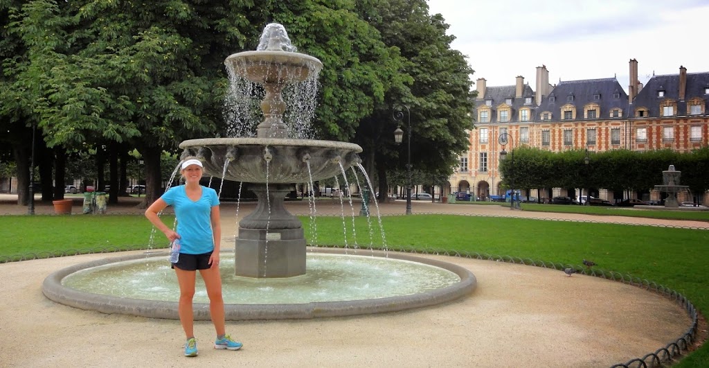Melinda – Sur le Pont d’Austerlitz, au loin Notre Dame et les belles maisons de l’île Saint Louis Lundi 27 mai – 12h51, mercredi 29 mai – 6h57 – Première fois à Paris pour Melinda de Miami (USA) !  Quel meilleur choix que de démarrer son premier séjour à Paris par une visite en courant avec Paris Running Tour ? Une bonne façon de se dégourdir les jambes après l’avion et une première découverte de la ville au plus près. Et pourquoi ne pas recommencer le surlendemain pour découvrir de nouveaux chemins au travers la capitale ? Nous avons donc couru en suivant deux parcours qui ont principalement sillonné le Marais, la Rive gauche, l’île de la Cité et le centre de Paris autour de la Seine. Voici le parcours (des numéros indiquent où les photographies de cet article ont été prises) : Nous avons pris de nombreuses photographies pendant notre course, en voici quelques unes : 1) La rue des Barres. Ce nom vient du fait qu’autrefois, au 10è siècle, sur l’emplacement de la rue, un mur, palissade de barres de bois, constituait un mur protégeant Paris : Melinda – Rue des Barres 2) L’Hôtel de Sully. Cet hôtel particulier fut habité à la fin de sa vie par le Duc de Sully, ancien ministre des Finances du roi Henri IV (Souvenez-vous de sa phrase restée célèbre : « Labourage et pâturage sont les deux mamelles dont la France est alimentée, les vraies mines et trésors du Pérou »). En traversant l’Hôtel de Sully, nous sommes passés directement de la rue Saint-Antoine à la place des Vosges. Melinda – Hôtel de Sully 3) Le bassin de l’Arsenal. Après avoir traversé la place de la Bastille, nous avons rencontré le Bassin de l’Arsenal, port et canal reliant la Seine au Canal Saint Martin et qui, autrefois, était un fossé qui remplissait les douves du château de la Bastille. Melinda – Port de l’Arsenal 4) Pont d’Austerlitz. Voir la photo au début de l’article. 5) Cour du Commerce Saint André. Encore un lieu qui se situe sur le tracé d’une ancienne enceinte de Paris, le mur du roi Philippe Auguste. Ce passage, ouvert en 1776, permet d’accéder au Café Procope (1686), l’un des plus anciens cafés au monde. Melinda – Cour du Commerce Saint André Second tour : 6) Le Tribunal de Commerce de Paris. Ce bâtiment présente la particularité d’avoir une coupole située, non pas au centre, mais sur le côté, de manière à ce que le dôme soit visible du Boulevard Sébastopol, dont il ferme la perspective au sud. Melinda – Sur le Pont Notre Dame. On peut voir, sur l’île de la Cité, successivement, l’hôpital de l’Hôtel Dieu, le Tribunal de Commerce de Paris et la Conciergerie. 7) Sur le Pont Neuf.  Melinda – Sur le Pont Neuf. A gauche, l’Institut de France, la Tour Eiffel et à droite, le Musée d’Orsay 8) La Colonnade du Louvre. Sommet du classicisme français, la Colonnade du Louvre fut réalisée à la demande du roi Louis XIV. La Colonnade du Louvre servit de modèle à de nombreux bâtiments célèbres, notamment, le Capitole des Etats-Unis à Washington, le Metropolitan Museum of Art à New-York et le San Francisco War Memorial Opera House. Melinda – La Colonnade du Louvre 9) Le pont Alexandre III. Le pont le plus large de Paris. Bâti avec les Grand et Petit Palais pour l’exposition universelle de 1900. Le pont permet un lien direct entre les Invalides et les Champs Elysées. Melinda – Le Pont Alexandre III – Au fond, les Invalides 10) Les Champs Elysées. Melinda – Les Champs Elysées, au loin l’Arc de Triomphe et tout au fond, la grande Arche de la Défense 11) La statue équestre de Jeanne d’Arc, place des Pyramides. Elle est située non loin de la porte Saint Honoré, où Jeanne d’Arc tenta de franchir l’enceinte de Charles V pour reconquérir Paris, occupé par les Anglais. Elle y fut blessée par une flèche à la cuisse. Melinda – Statue équestre de Jeanne d’Arc, de Frémiet et inaugurée en 1874 12) La Cour Puget au Louvre. Melinda – Cour Puget, située avec la cour Marly de part et d’autres du passage qui relie la Pyramide du Louvre à la rue de Rivoli 13) La fontaine Stravinsky. Cette fontaine, fontaine Stravinsky ou fontaine des automates, fut créée par le couple d’artiste Nikki de Saint Phalle et Jean Tinguely en 1983 et évoque l’oeuvre du compositeur Stravinsky. Melinda – La Fontaine Stravinsky, à droite le Centre George Pompidou De belles découvertes, n’est-ce pas ? Merci Melinda ! Le circuit des tours :