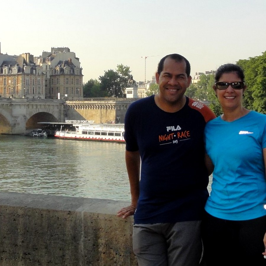 Gustavo et Janaina – L’Ile de la Cité vue depuis le Quai du Louvre 7h13 – Gustavo et Janaina vivent à Salvador (Brésil). Pour visiter Paris en courant, nous avons choisi une belle balade autour du Louvre. Partis des Grands Boulevards et ayant emprunté le passage des Panoramas (voir l’article précédent), puis le Palais Royal, nous avons rejoint le Louvre, en traversant la Rue de Rivoli : Janaina et Gustavo – Le Louvre, entrée du passage Richelieu Le Passage Richelieu relie la rue de Rivoli à la Pyramide du Louvre et permet de voir les belles sculptures des cours Puget et Marly (rappelez-vous de l’article qui parle des chevaux de Marly) : Gustavo et Janaina – Le Louvre, cour Puget Après cette petite pause devant les vitres du passage Richelieu, nous avons continué notre course au pied de la Pyramide, magnifique pyramide de verre qui respecte l’espace central du Louvre et permet de voir le Louvre dans sa totalité : Gustavo et Janaina – Le Louvre et la Pyramide du Louvre Qu’y avait-il avant la Pyramide ? Un espace planté d’arbres et où les voitures pouvaient se garer. Au pied des arbres, impossible de voir l’ensemble des façades : Le Louvre avant 1983 Dans la même direction, vers le jardin des Tuileries, nous avons fait une pause photo pour profiter de la vue sur la Tour Eiffel, le Musée d’Orsay et aussi quelques statues de Maillol. Cherchez-les dans les buissons en agrandissant la photo : Gustavo et Janaina – Le Louvre (Pavillon de Flore), Musée d’Orsay, Tour Eiffel et jardin des Tuileries Nous avons ensuite quitté le jardin des Tuileries en passant par le petit tunnel qui sort du jardin en allant vers la Seine. Nous avons traversé la Seine par la passerelle Léopold Sédar Senghor en montant les escaliers du pont, où nous est offert un beau point de vue sur Notre Dame : Gustavo et Janaina – Passerelle Léopold Sédar Senghor De l’autre côté du pont, se trouve le beau Palais de la Légion d’Honneur, récemment ravalé et nettoyé (nous avions parlé de sa réplique à San Francisco ici) : Janaina et Gustavo – Palais de la Légion d’Honneur Évoquant les différents endroits pour courir, nous avons parlé des immenses et longues belles plages du Brésil. A Paris, nous avons aussi la chance d’avoir quelques plages 😉 Du moins de mi-juillet à mi-août, les berges de la rive droite, notamment, accueille l’opération « Paris-Plages » : Gustavo et Janaina – Sur le Pont Neuf. Derrière, le beau sable de « Paris-Plages » avant l’ouverture des berges Un peu plus loin, près du Louvre, se trouve l’oratoire du Louvre, avec la Statue de l’Amiral de Coligny, dont la fin tragique nous rappelle de tristes moments de l’histoire de France : Gustavo et Janaina – Oratoire du Louvre En poursuivant notre route, nous sommes passés par la belle galerie Véro Dodat et nous avons été étonnés par la hauteur des chaussures de ce célèbre chausseur Parisien (il s’agit de la première boutique de Christian Louboutin) : Gustavo et Janaina – Galerie Véro Dodat et boutique de chaussures excentriques Merci Janaina, merci Gustavo ! Le circuit du tour :