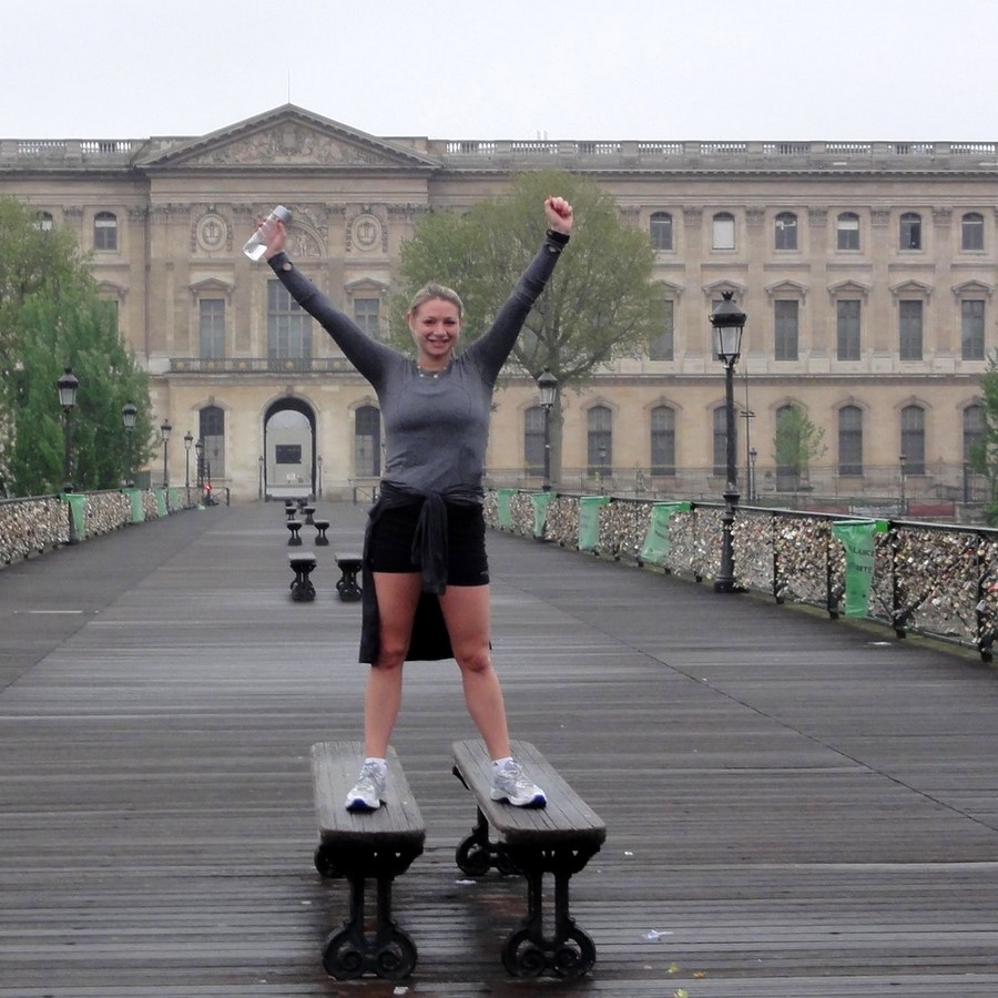 Cori – Le pont des Arts et le Louvre 7h10 – Cori de New-York City (USA), est venue à Paris pour un court séjour de trois jours. Cori a cependant souhaité faire un long tour dans Paris et cela malgré la petite pluie fine que nous avons eue ce matin-là. Nous avons donc fait une longue boucle et sillonné Paris depuis l’Arc de Triomphe jusqu’à Notre Dame en passant par la Tour Eiffel. Nous avons placé notre parcours sous le signe de l’amitié Franco-Américaine en débutant le tour par la place des Etats-Unis dans le 16ème arrondissement de Paris. On peut y trouver un monument consacré à cette bonne entente. Il rappelle le soutien de la France à la toute jeune Amérique, une poignée de mains entre Lafayette et Washington : Cori – Place des Etats-Unis Un peu plus tard, nous avons découvert la Tour Eiffel, la tête dans les nuages : Cori – Tour Eiffel Avant de longer la Seine, notamment pour croiser le Pont des Arts, nous avons rencontré le musée du Quai Branly : Cori – Musée du Quai Branly Le musée du Quai Branly, musée des Arts et des Civilisations est très récent puisqu’il a été ouvert en 2006. Celles ou ceux qui faisaient la course des 20 km de Paris à la fin des années 1990 se souviennent-ils que l’endroit fut pendant quelques années le lieu de retrait des dossards ? Merci Cori ! Le circuit du tour :