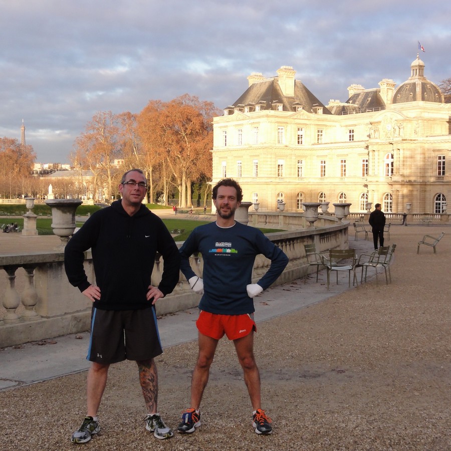 Daniel, Wils – Le Sénat 9h06 – Avec Daniel et Wils de New-York (USA), nous avons couru en grande partie sur la rive gauche : le jardin des plantes, les arènes de Lutèce, le Panthéon, la rue Saint-Jacques… Sur notre chemin, après avoir descendu la montagne Sainte Geneviève, nous avons traversé le jardin du Luxembourg et rencontré le Sénat. Le Sénat avec l’Assemblée Nationale sont les deux chambres qui représentent le pouvoir législatif Français. Le Sénat français est aussi appelé Palais du Luxembourg, lieu où siègent les sénateurs depuis la révolution. Ce palais fut commandé en 1615 par la régente Marie de Médicis, veuve du roi Henri IV et mère de Louis XIII. Sur notre trajet, nous avons remarqué au sol de curieux médaillons : Ces médaillons, au nombre de 135, furent posés à Paris en 1994, sur la ligne du méridien de Paris (aujourd’hui, nous utilisons le méridien de Greenwich). Ils indiquent la ligne virtuelle Nord-Sud du méridien avec les lettres « N » et « S ». L’artiste néerlandais Jan Dibbets réalisa ainsi l’hommage à François Arago (1786-1853), scientifique et homme politique français.  Le méridien de Paris fut établi pour permettre la création de l’Observatoire astronomique de Paris créé en 1667 (Arago fut notamment le directeur de l’observatoire de Paris). D’ailleurs, en courant dans le jardin du Luxembourg, près du Sénat, Daniel nous fit remarquer l’Observatoire au loin en regardant au Sud du jardin. Combien de « points Arago » trouverez-vous en parcourant Paris ? Suivez le méridien ! Merci Daniel, merci Wils ! Le circuit du tour :
