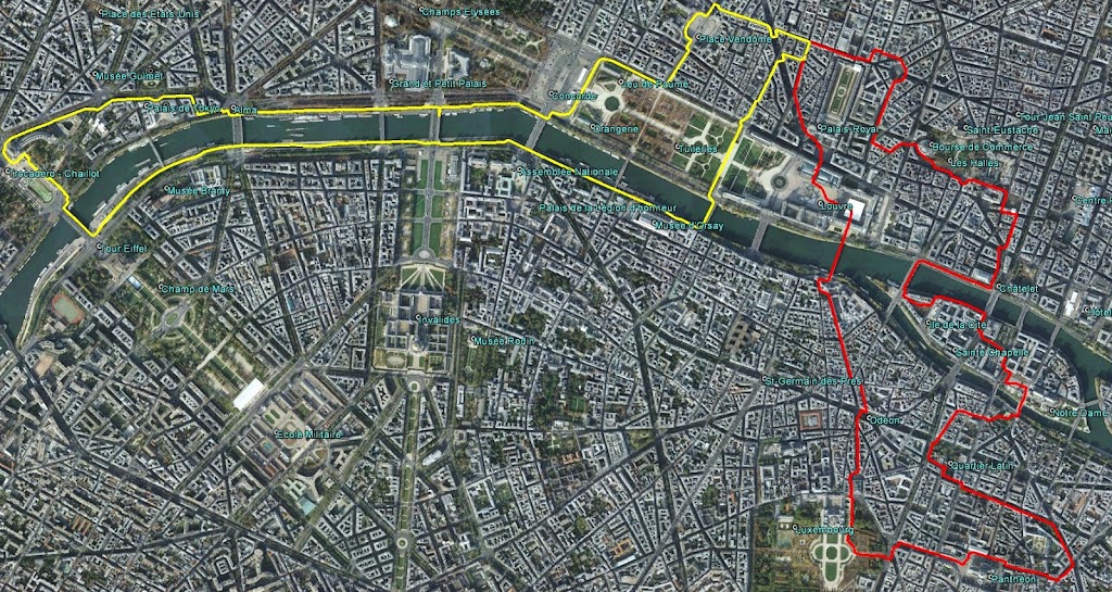 Repartons vers Notre Dame. Après quelques kilomètres de course, nous pouvons apercevoir la Cathédrale de plus près depuis le pont du Carrousel :