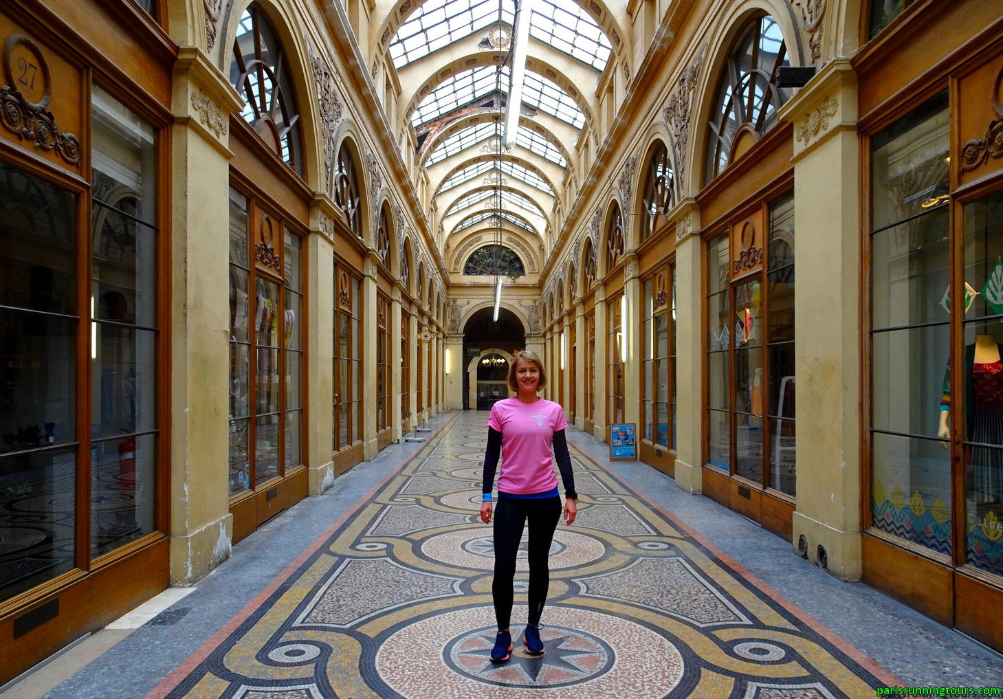 Running does not prevent us from passing through the beautiful covered galleries of Paris, here the Galerie Vivienne completed in 1823 (and which, a little degraded, is being restored):